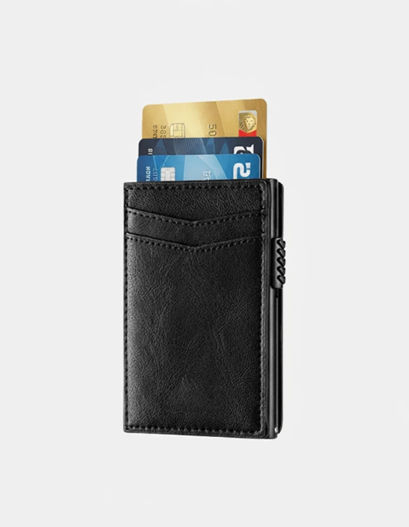 Ta moška črna denarnica v minimalističnem slim dizajnu združuje eleganco, praktičnost in napredno RFID zaščito. Izdelana je iz kakovostnega usnja z gladko teksturo, ki daje prestižen videz in prijeten občutek na dotik. Posebnost denarnice je integriran izvlečni mehanizem, ki omogoča hiter in enostaven dostop do kartic s pritiskom na gumb. S kompaktnimi merami in funkcionalno zasnovo nudi dovolj prostora za več kartic, hkrati pa se brez težav prilega v vsak žep. Ta denarnica je idealna izbira za modernega moškega, ki ceni stil, varnost in udobje v enem izdelku.
