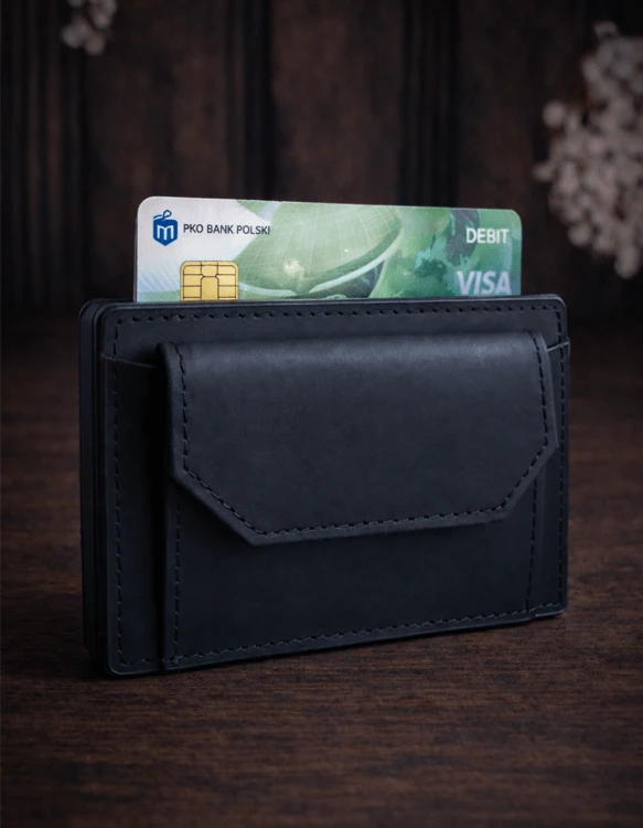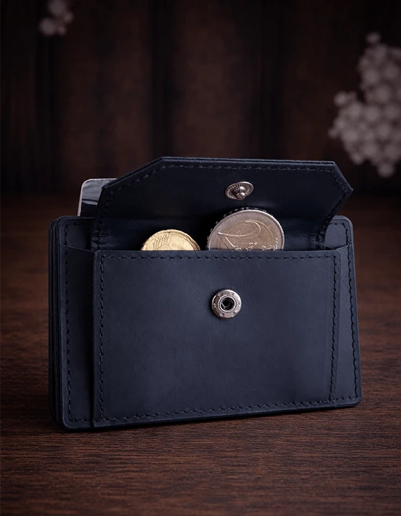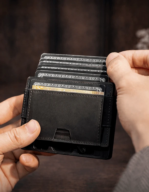 Srce denarnice predstavlja pop-up mehanizem, ki omogoča hiter in pregleden izmet kartic z enim samim potegom. Kartice so varno shranjene v notranjem nosilcu, kjer so zaščitene pred poškodbami in neželenim brezstičnim skeniranjem. Denarnica ponuja dovolj prostora za kartice ter ločen predal za bankovce.