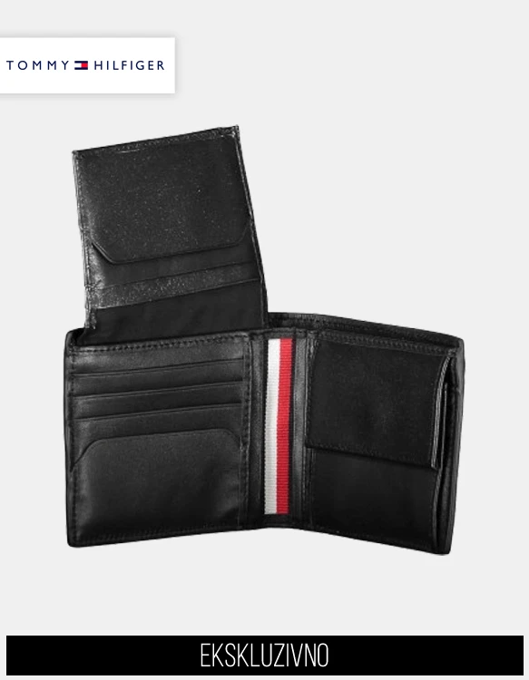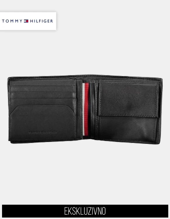 Izberi sodobno prefinjenost – preklopna moška denarnica Tommy Hilfiger iz 100% pristnega usnja z značilnim logotipom in dodatnim pregibnim delom za odlično organizacijo.