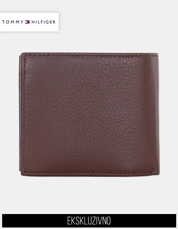 Izberi prefinjeno praktičnost – preklopna moška denarnica Tommy Hilfiger iz pravega usnja z značilno zrnato teksturo, flip-up notranjim delom in urejeno razporeditvijo.