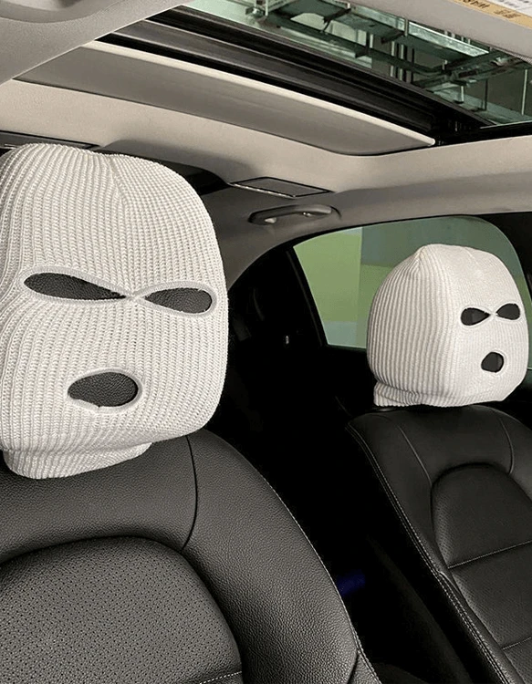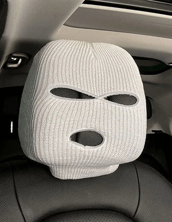 Zabavna pletena prevleka za vzglavnik v obliki ski maske, ki popestri notranjost vozila in se enostavno namesti na večino sedežev.