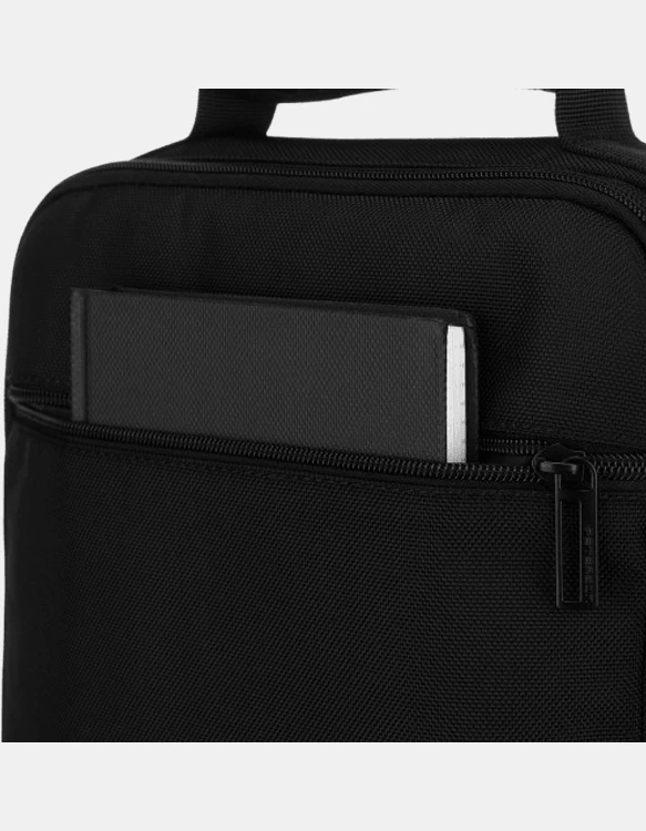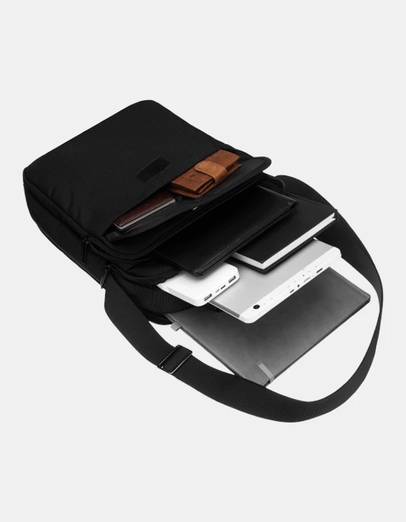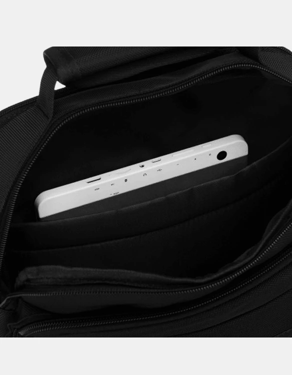Torba se zapira z zadrgo in ponuja dobro organizirano notranjost za vsakodnevne potrebščine. Z dvema glavnima predaloma in več dodatnimi žepi omogoča pregledno shranjevanje manjšega prenosnika ali tablice, telefona, denarnice, dokumentov, ključev in drugih predmetov. Zaradi praktične oblike in uporabne velikosti je primerna za vse, ki želijo imeti stvari vedno pri roki.